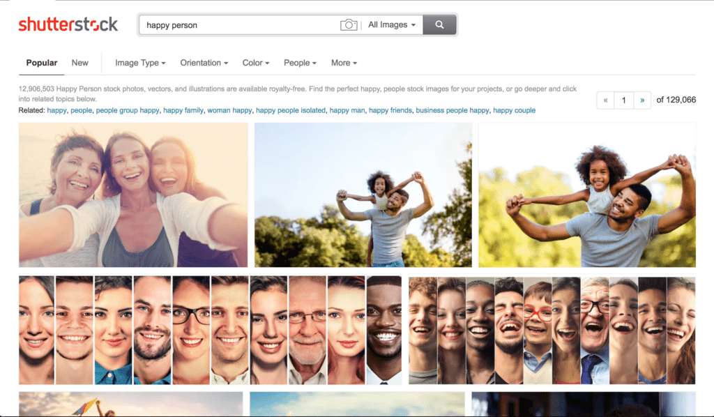 *We’d like to note that for a majority of these photo stock websites, we saw images people of all ages, gender, religion, and races being represented. We even saw images of happy pets!