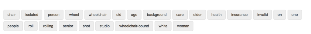 Despite the fact this woman is happy and smiling, the keywords linked to the photo revolve solely around her disability and age. Because of this, the picture won’t ever show up in general searches and is unlikely to be used on non-medical web pages.