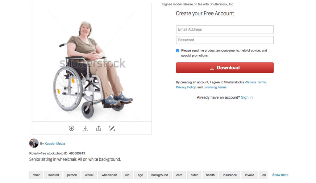 While governments have a responsibility to vet their websites for this problem properly, the fault doesn’t lie entirely with them. Most photos online come from stock photo sites such as Shutterstock. These domains offer royalty-free images that companies can use without fear of copyright infringement. The search features on these sites unintentionally dictate the aesthetics of most of the web. If pictures of disabled people don’t exist or aren’t tagged under the right keywords, then content creators won’t use them on their web pages.